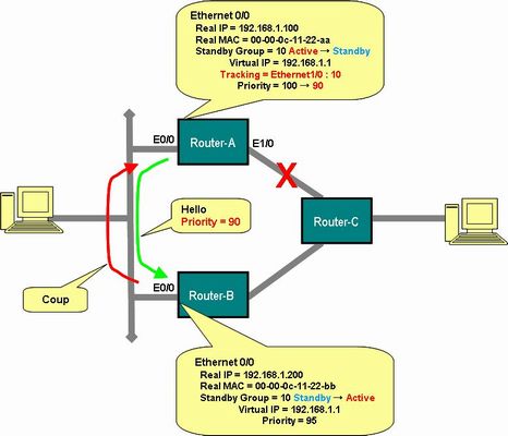 *Feb 11 23:38:41.628: %HSRP-6-STATECHANGE: Ethernet0/0 Grp 10 state Standby -> Active