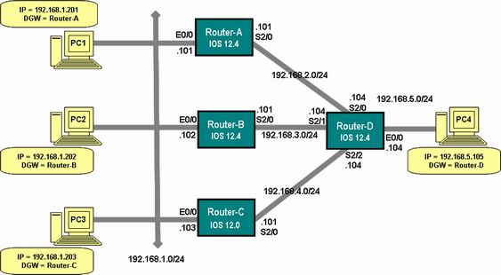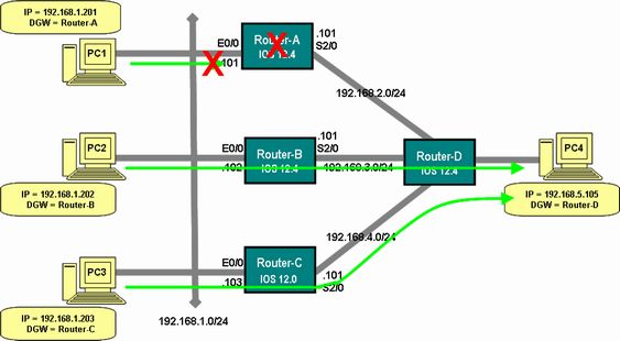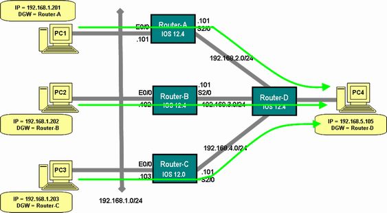 上図では、Router-A とC の間は、3本のEthernet でEtherChannel を構成しています。